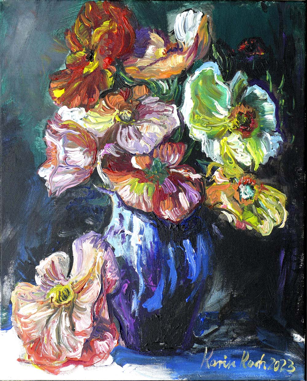 Mohnblumen in der Vase 1, Acryl auf Leinwand, 40 x 50 cm