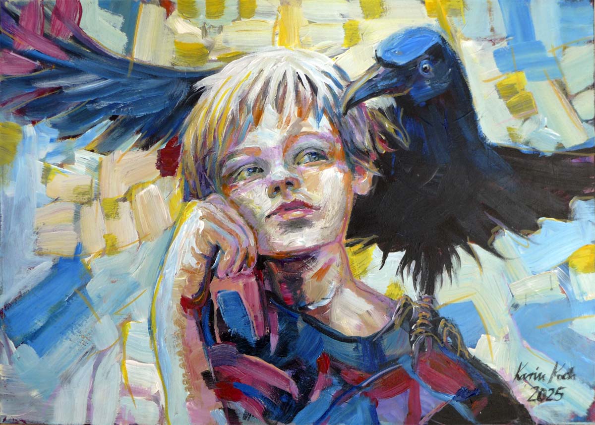 Dorian mit Rabe, Acryl auf Leinwand, 70 x 50 cm