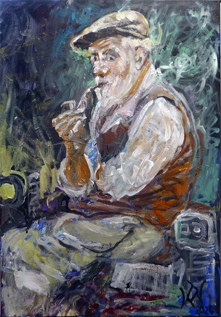 Mann mit Pfeife, Acryl auf Leinwand, 60 x 80 cm
